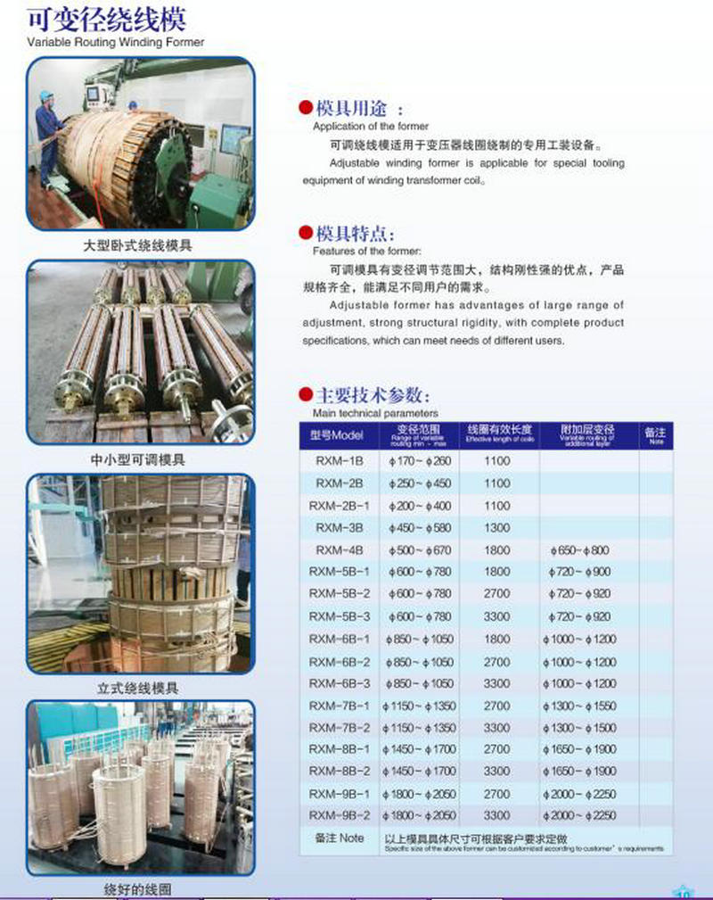 • 概述:???本可調(diào)繞線模適用于臥式或立式繞線機(jī)進(jìn)行變壓器線圈繞制的專用設(shè)備;是變壓器繞線模具更新?lián)Q代的產(chǎn)品。 ☆本產(chǎn)品具有變徑調(diào)節(jié)范圍大,結(jié)構(gòu)剛性強(qiáng)的優(yōu)點(diǎn),產(chǎn)品規(guī)格齊全,能滿足不同用戶的需求。