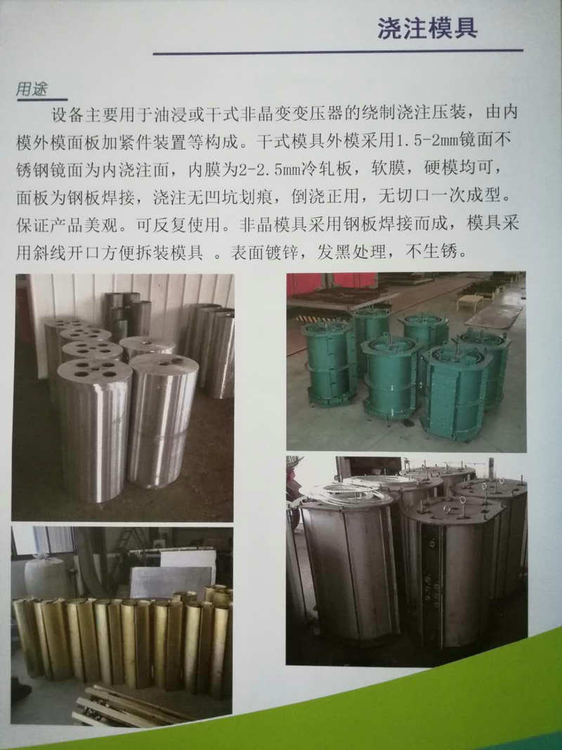 • 概述:???本可澆注模適用于干式變壓器線圈的澆注的工裝設備,范圍大,結構剛性強的優點,產品規格齊全,能滿足不同用戶的需求。